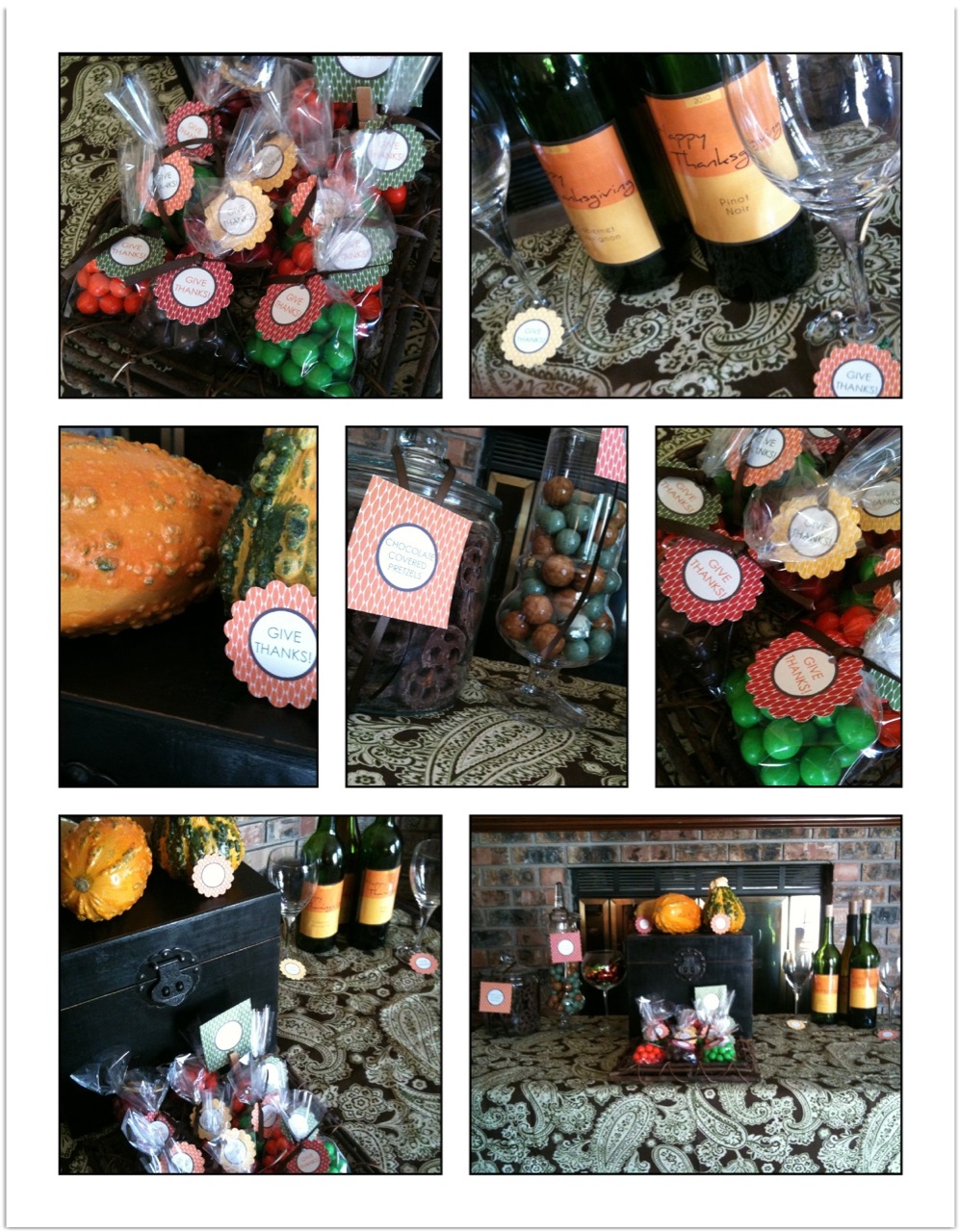 Our Give Thanks table design includes wine bottle labels, favor circles, jar tags and custom wine charms! View our complete line of party goods (including DIY) at www.munchkindesigns.com.